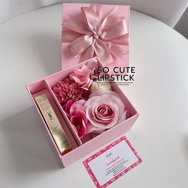 Hộp Quà Màu Hồng 4 Hoa Mix - Son Dài
