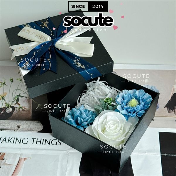 Hộp Quà Vuông Mix 3 Hoa - Đen 13.5x13.5x7cm