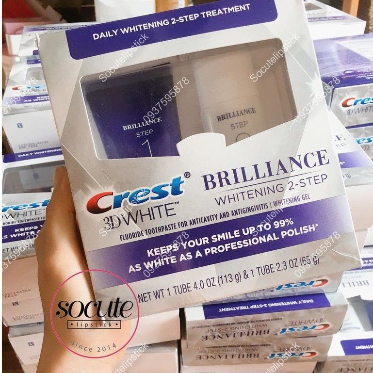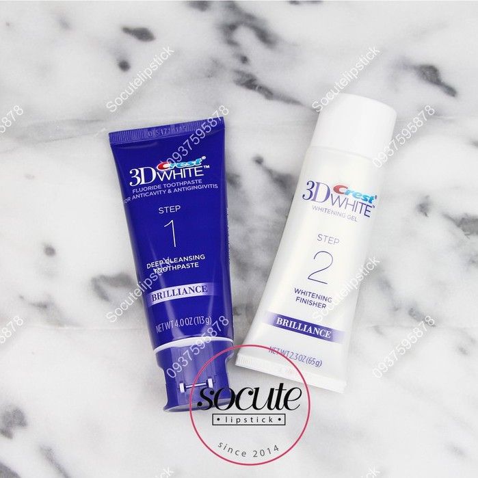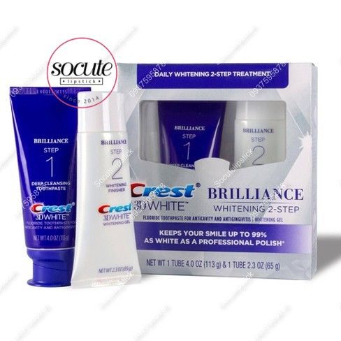 Set Kem Đánh Răng Crest 3D White Brilliance Whitening 2- Step