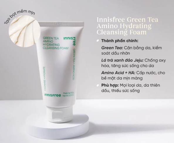 Sữa rửa mặt trà xanh innisfree Green Tea Amino Cleansing Foam Mini 30gr