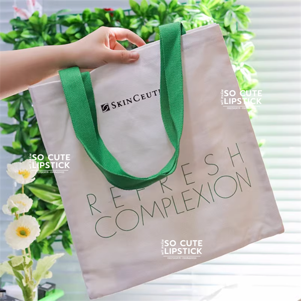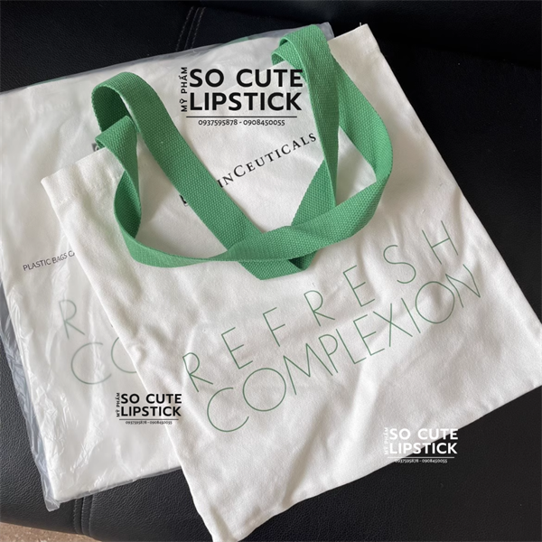 Túi Tote Skinceuticals Trắng Quai Xanh Lá 34.5*38cm