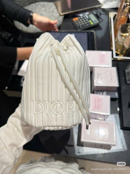 Túi Đựng Mỹ Phẩm Dior Dây Rút Sọc Trắng Mẫu Mới 2025