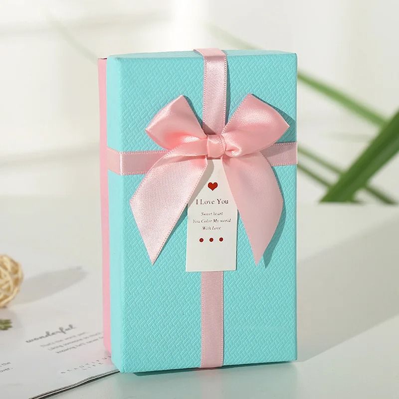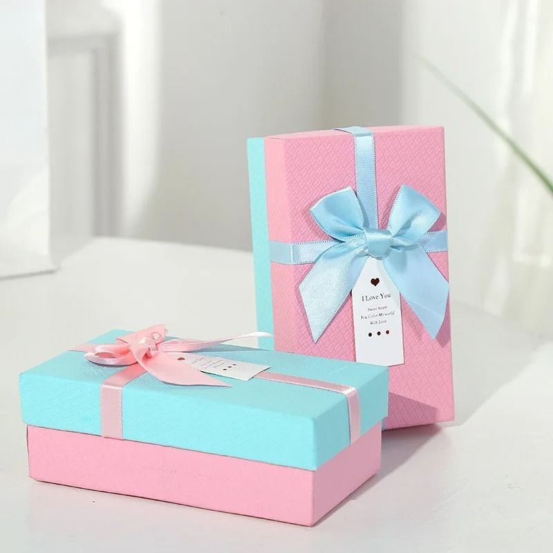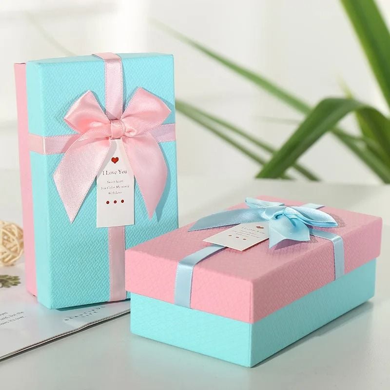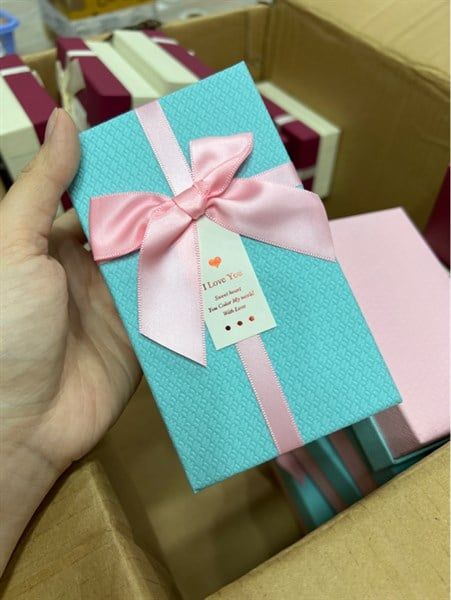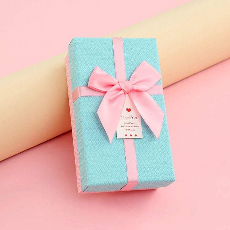 Hộp Quà Tặng 14,5x8,5x5cm Xanh Nơ Hồng
